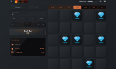 Retira tu apuesta en cualquier momento antes de conseguir una mina explosiva para cobrar las ganancias acumuladas.